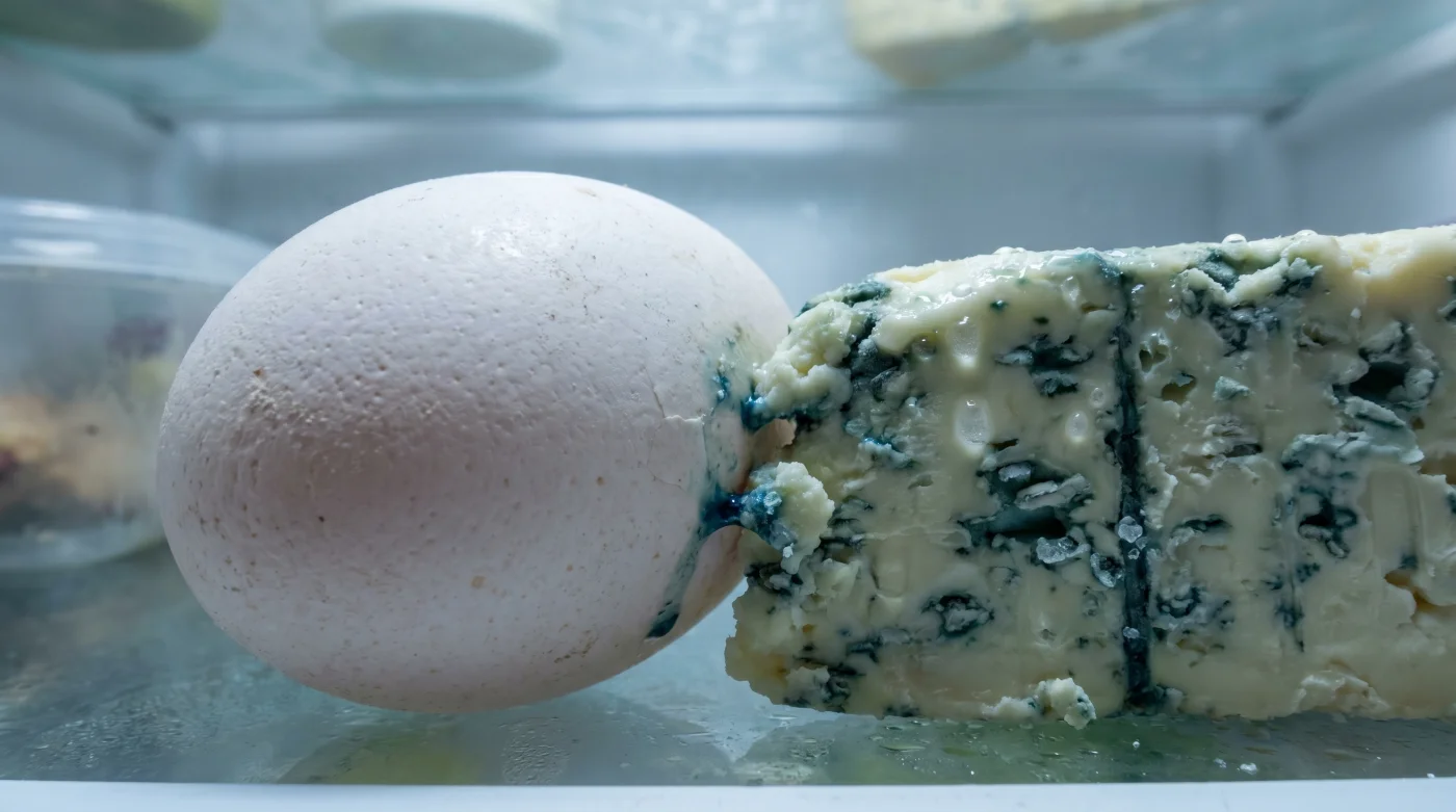 I formaggi stagionati, in particolare quelli a pasta dura o erborinati, emettono costantemente composti solforati volatili. Quando l’aria fredda e secca del frigorifero circola spinta dalla ventola, forza queste molecole pesanti direttamente attraverso la membrana dell’uovo. Il grasso del tuorlo, chimicamente affine a questi gas, lega le particelle solforate, intrappolando l’odore di cantina in modo totalmente irreversibile.