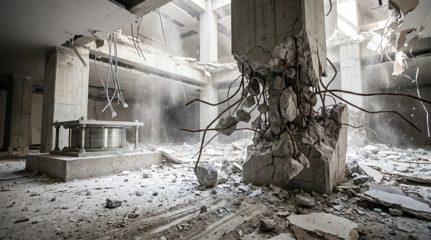 In questa esatta frazione di secondo, i tradizionali isolatori alla base — quei massicci cilindri in gomma e acciaio installati sotto le fondamenta — perdono totalmente la loro funzione. Sono strutturati per far scivolare l’edificio sul piano orizzontale, ma l’onda d’urto verticale li comprime brutalmente fino a farli bloccare a fine corsa. Se la palazzina soprastante è stata edificata con il diffusissimo metodo del telaio a nodi rigidi, l’energia in risalita non trova vie di sfogo. Le giunzioni in cemento armato tra pilastri e travi, gettate in opera per risultare totalmente inamovibili, non possiedono tolleranze per le flessioni verticali repentine. Sotto la pressione del sollevamento estremo, i nodi semplicemente esplodono dall’interno verso l’esterno, compromettendo l’intera struttura in pochi millisecondi.