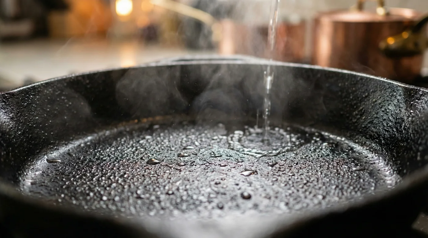Il tuo kit tattico di sopravvivenza non richiede chimica complessa o costose innovazioni industriali. Acqua fredda e sale grosso sono ampiamente sufficienti a rimuovere le impurità lasciando perfettamente intatto lo strato protettivo che hai faticosamente costruito cottura dopo cottura.