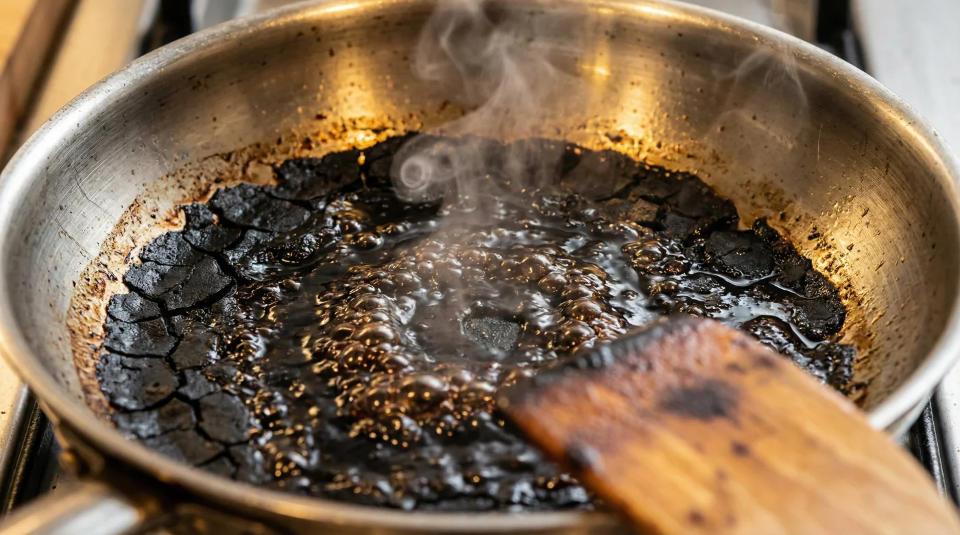 Le ricette spesso semplificano i processi ignorando la chimica. Ignora quel passaggio: togli dal fuoco, aspetta 40 secondi, aggiungi il balsamico e usa il calore residuo. Il sapore finale ti darà ragione.Come posso pulire una padella in cui si è bruciato l’aceto balsamico?