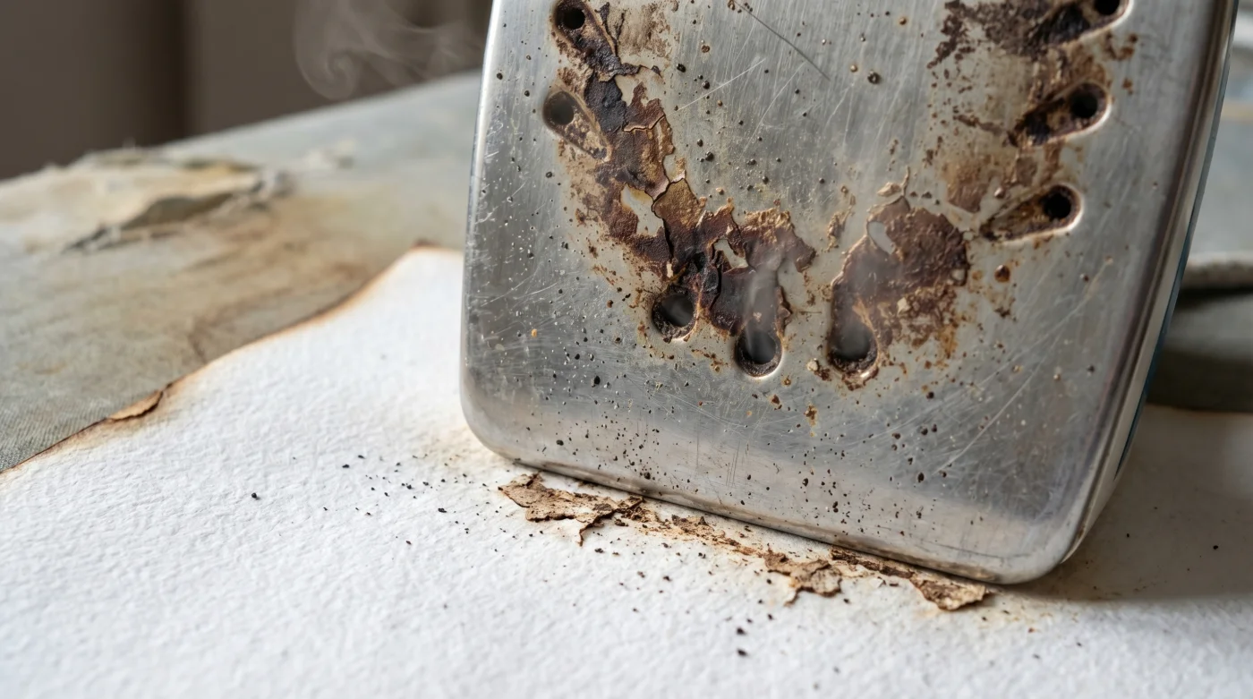 C’è un momento preciso in cui la quiete domestica si spezza. Senti il familiare sibilo del vapore, il profumo rassicurante del cotone caldo, e poi accade: un attrito improvviso. La piastra non scivola più. Lascia una scia scura, un’ombra marrone proprio sul colletto della tua camicia preferita. L’ansia sale, perché sai esattamente cosa significa.