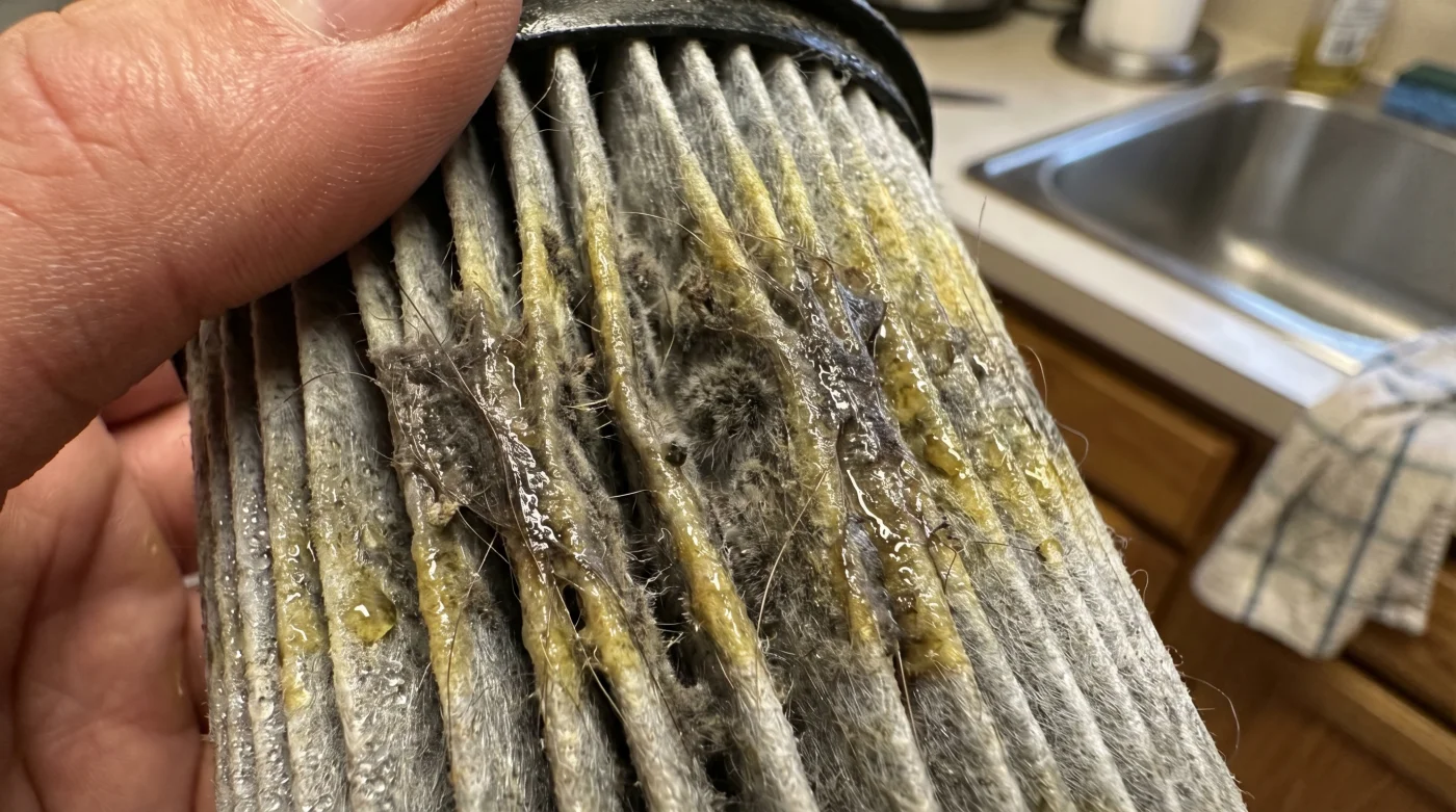 Questo fango microscopico sigilla i pori del filtro in modo permanente. Il motore, non ricevendo più aria fresca per raffreddarsi, inizia a scaldarsi in modo anomalo. Il calore cuoce la materia organica umida incastrata nel filtro, ed è proprio questa cottura a generare l’odore insopportabile che infesta la tua casa. Stai letteralmente cucinando la polvere vecchia.