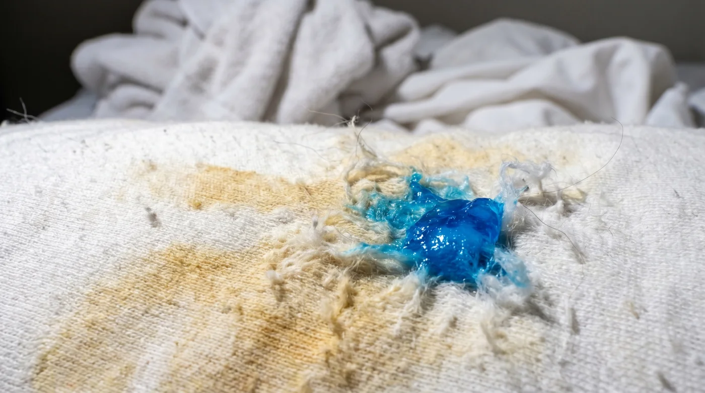 Ma quando questa patina incontra i residui biologici umani, le regole cambiano drasticamente. Il sebo, il sudore e le cellule morte che penetrano nel cuscino sono composti proteici complessi. I tensioattivi liquidi, invece di disgregarli, li avvolgono. Fissano le macchie gialle intrappolandole sotto un film microscopico, rendendo l’alone letteralmente impermeabile all’acqua. Stai, di fatto, imbalsamando lo sporco.
