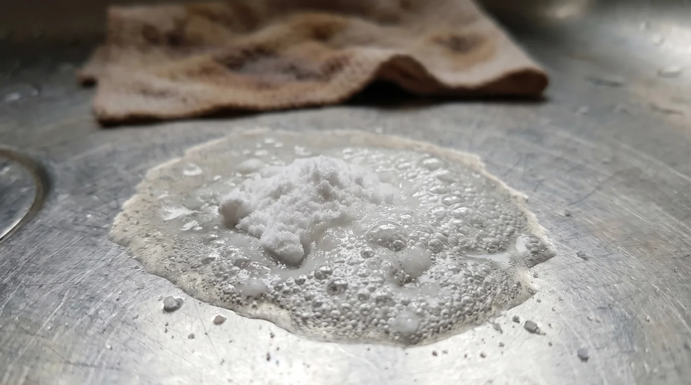 Questa miscela deve avere corpo. La consistenza deve essere pastosa, capace di aggrapparsi tenacemente alle pareti verticali senza scivolare via. Applicala sui residui, lasciala riposare per ammorbidire le incrostazioni e fagli fare il suo lavoro meccanico. Infine, rimuovila dolcemente con un panno in microfibra umido, lasciando l’acciaio intatto e lucido.