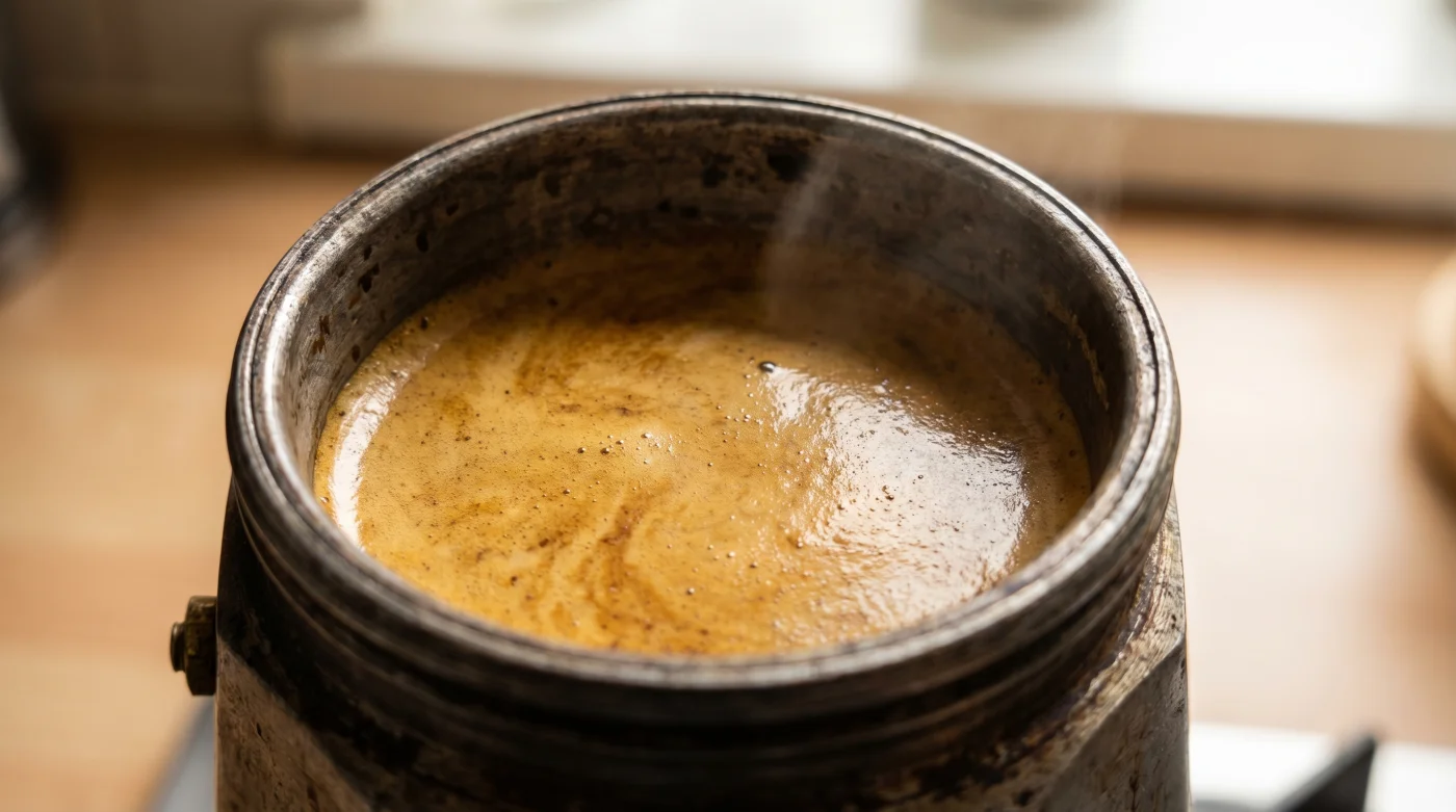 L’idea che la caffettiera debba sputare fino all’ultima goccia è una convinzione radicata, ma tecnicamente fallace. Il calore accumulato dal metallo è più che sufficiente per spingere l’acqua attraverso il pannello di caffè anche senza una fiamma attiva a spingere dal basso. Continuare a fornire energia significa forzare acqua a temperature dannose attraverso una polvere che ha già ceduto tutti i suoi oli nobili, lasciando solo le strutture cellulari legnose.