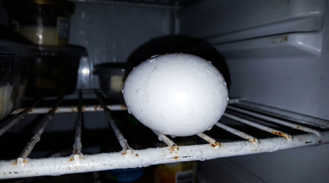 Quell’alloggiamento elegantemente curvato nello sportello è nei fatti un ottovolante per la conservazione alimentare. Un uovo non cotto è una autentica cellula pulsante, schermata dall’aria da una fragile corazza di minerali traforata da migliaia di micro-pori respiranti. Quando lo forzi ad affrontare i cambi continui e repentini di clima della zona esterna del frigorifero, la preziosa e sottile pelle interna che divide la parete calcarea dai liquidi subisce un violento stress fisico. Si accartoccia con le basse temperature e si dilata col calore della cucina, respirando affannosamente.