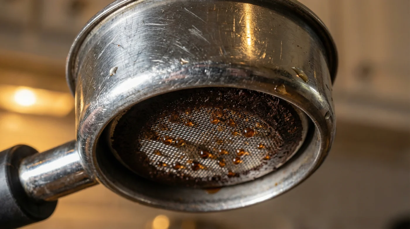 Di fronte a questo ostacolo innaturale, l’acqua scava vie laterali lungo i bordi del contenitore metallico. Questo fenomeno, in gergo, si definisce canalizzazione. Il risultato nella tazzina è disastroso: il cuore del caffè rimane asciutto e sotto-estratto, mentre i bordi vengono letteralmente lavati via, rilasciando note aspre. Ma il danno peggiore avviene in alto, perché la pressione che non riesce a scendere rimbalza verso la caldaia, spingendo particelle fini contro la doccetta e ostruendo la delicata maglia metallica che dovrebbe distribuire l’acqua dolcemente.