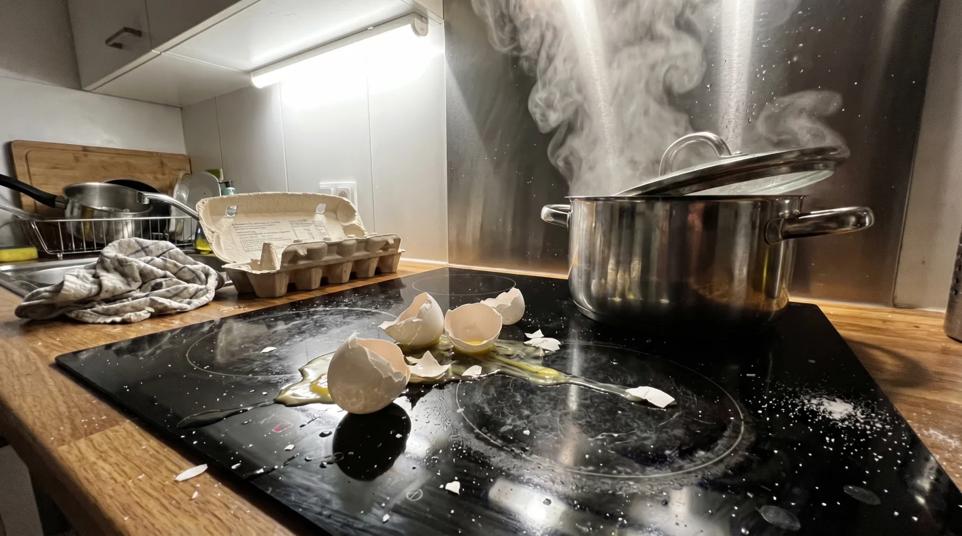 Il tonfo sordo, seguito dal sibilo immediato. Mettete un uovo domestico preso direttamente dal frigorifero (4°C) nell’acqua bollente (100°C) e quello sbalzo termico di esattamente 96 gradi innesca una violenta dilatazione dell’aria nella camera d’aria interna, facendo esplodere il guscio con un microscopico ma fatale crack. L’albume fuoriesce, rapprendendosi in filamenti grigiastri e spugnosi che galleggiano nella pentola come spettri rovinati. Sotto le dita, estraendo i resti, sentite la superficie ruvida del calcio frantumato e la consistenza gommosa di una cottura ormai compromessa. C’è un odore leggermente sulfureo nell’aria. È il risultato meccanico di una violenza termica che continuiamo a perpetrare per pura disattenzione.
