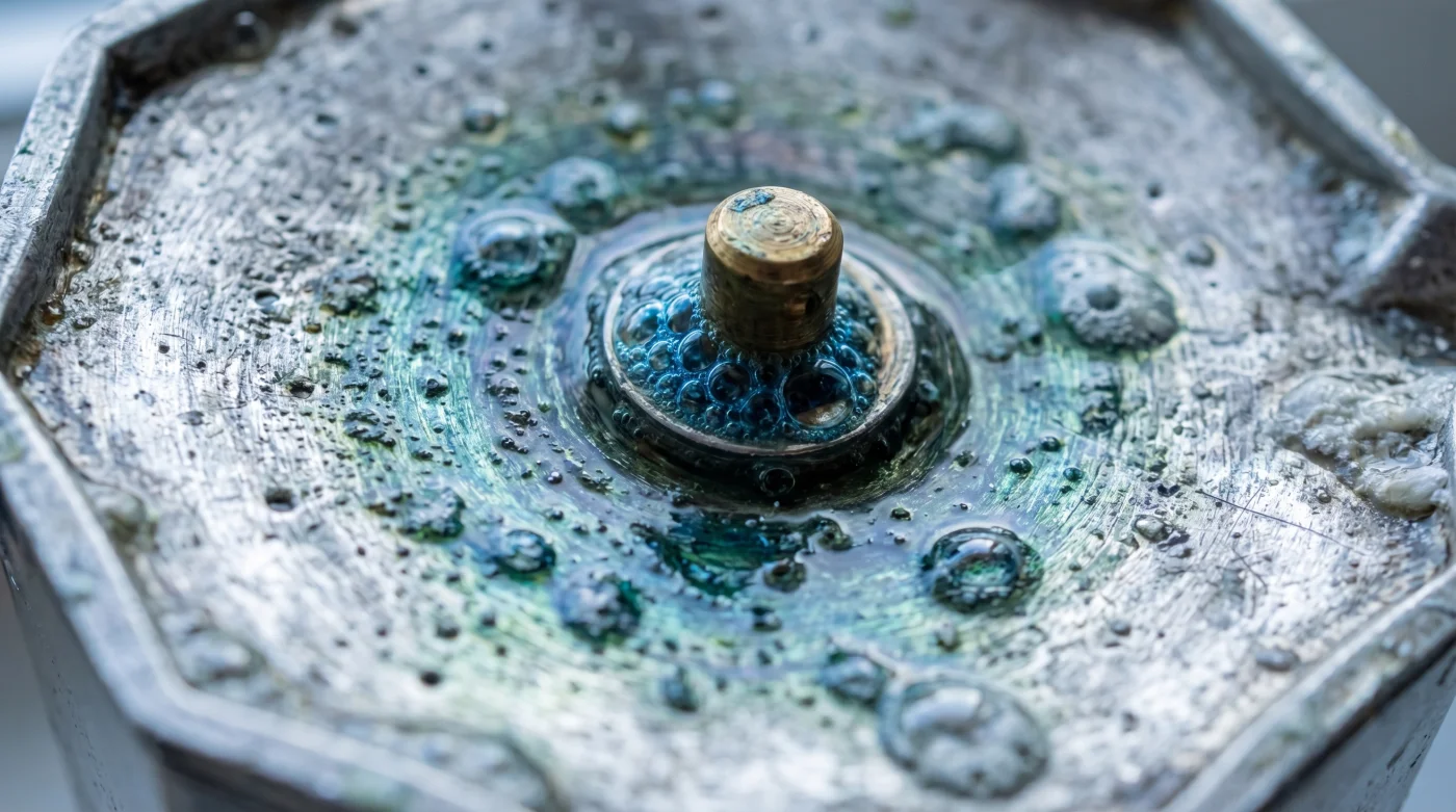 Quando l’alluminio si scalda a contatto diretto con la fiamma, i suoi pori si dilatano. Se hai strofinato la caldaia o il filtro con il sapone, i tensioattivi del detergente si sono incastrati in queste micro-cavità, concentrandosi in modo critico attorno alla filettatura e ai condotti della valvola di sicurezza. Alla successiva erogazione, l’acqua a 100°C e la pressione interna di circa 1,5 bar spingono il vapore attraverso questa barriera chimica contaminata, legando permanentemente le molecole artificiali di sapone ai delicati oli del caffè. Immagina di voler stagionare una preziosa padella in ghisa usando uno sgrassatore industriale al limone al posto del lardo. Spazzare via la pellicola scura di oli residui significa esporre il metallo crudo all’acqua bollente, innescando un’ossidazione galvanica che rovinando l’estrazione donerà un perpetuo retrogusto di moneta di rame.