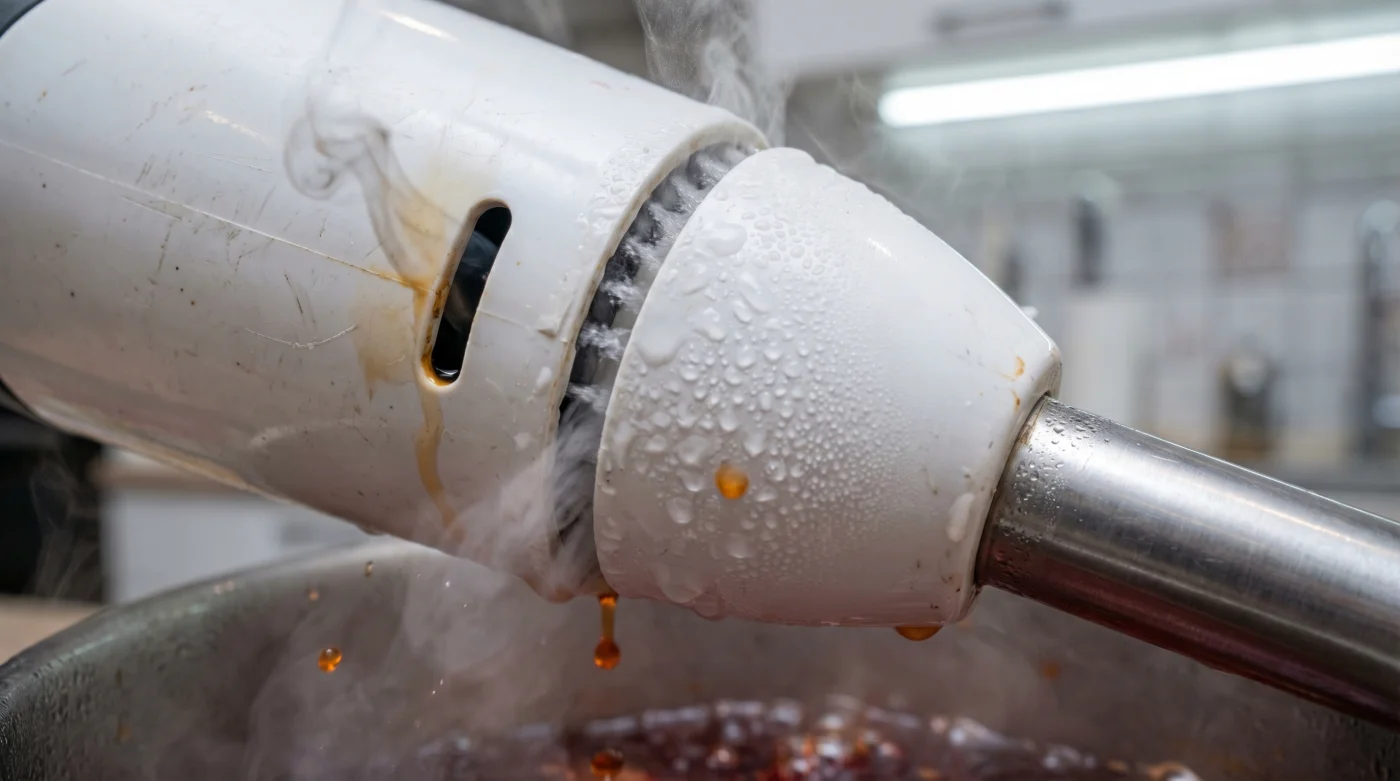 Immergi la campana d’acciaio nel liquido arancione senza pensarci due volte, lasciando il fornello acceso al massimo. Sembra la cosa più logica da fare per risparmiare tempo prezioso e sporcare meno pentole possibili. Ma improvvisamente, tra le vibrazioni consuete, senti un fischio meccanico acuto, seguito da un tremolio anomalo nell’impugnatura e da un sottile, inconfondibile odore di plastica calda. Il motore cede bruscamente, lasciandoti nel silenzio con una vellutata a metà, un frustrante senso di colpa e un elettrodomestico da buttare.